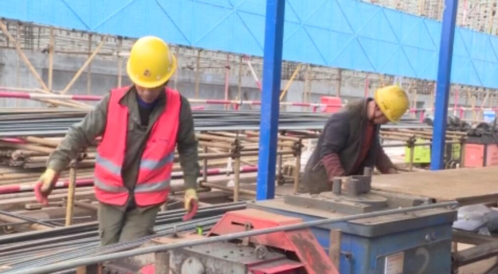 2月17日,记者在项目现场看到,塔吊林立,百余名工人分散在各个区域紧张作业,做钢筋、砌墙、搭架,现场一派忙而有序的施工场景。