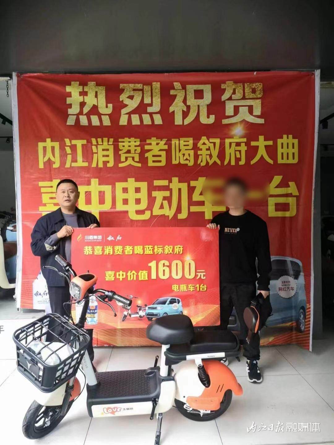 市民喝叙府大曲中得一辆电动车