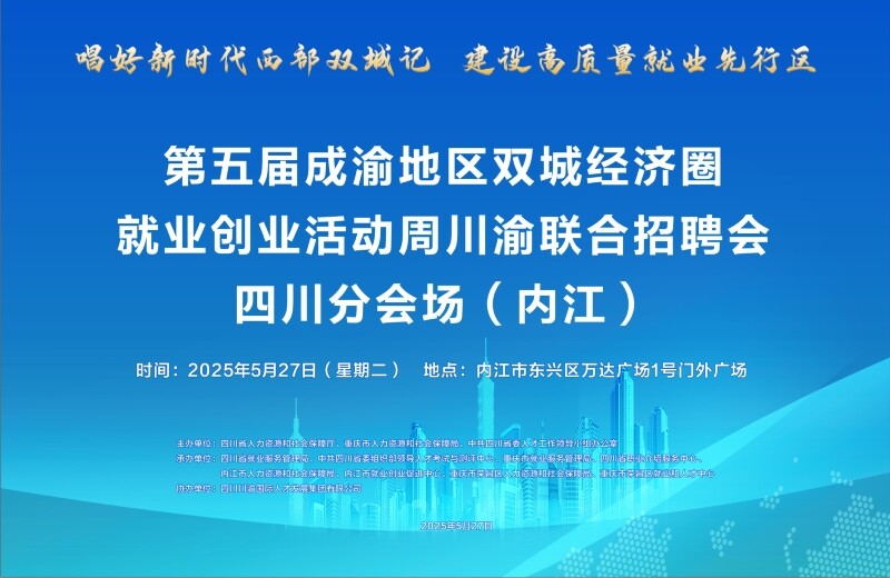 成渝携手,职等你来!第五届成渝地区双城经济圈就业创业活动周川渝联合招聘会四川分会场(内江)即将启幕