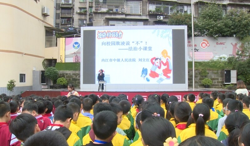 日前,内江市中级人民法院携手市第五小学,开展“守护校园美好心灵 拒绝校园欺凌”专题活动,为全校师生送上了一堂生动深刻的法治教育课,共筑校园反欺凌防线,护航少年健康成长。