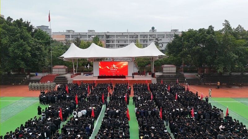 资中二中高2028届新生军训开训动员暨国防教育大会举行