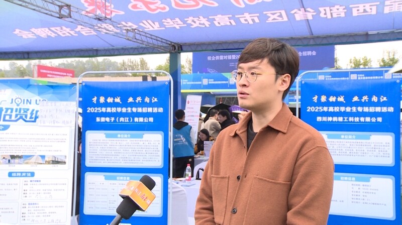 东微电子(内江)分公司是一家专注于高端集成电路制造用材料、设备及零部件服务的企业,专精特新“小巨人”企业。“这次招聘会提供信息专员、市场BD、技术员、讲解员等4个岗位,需要20多名专业技术人才,薪资在3500元到10000元。”该公司总经理陈宇轩介绍道,“公司还提供人才公寓,‘五险一金’等福利,优秀员工有机会到北京、上海、香港,甚至海外分公司外派学习的机会,将优秀的技术带回内江,发展内江。”