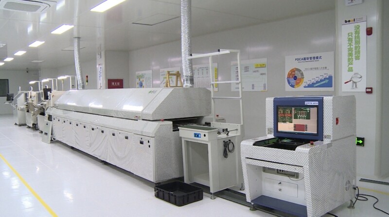 与此同时,在内江布尔智能科技有限公司的贴片车间,无人化机器精准作业,每一个流程都围绕着汽车数据科技产品的生产来展开,尽显智能制造的魅力。