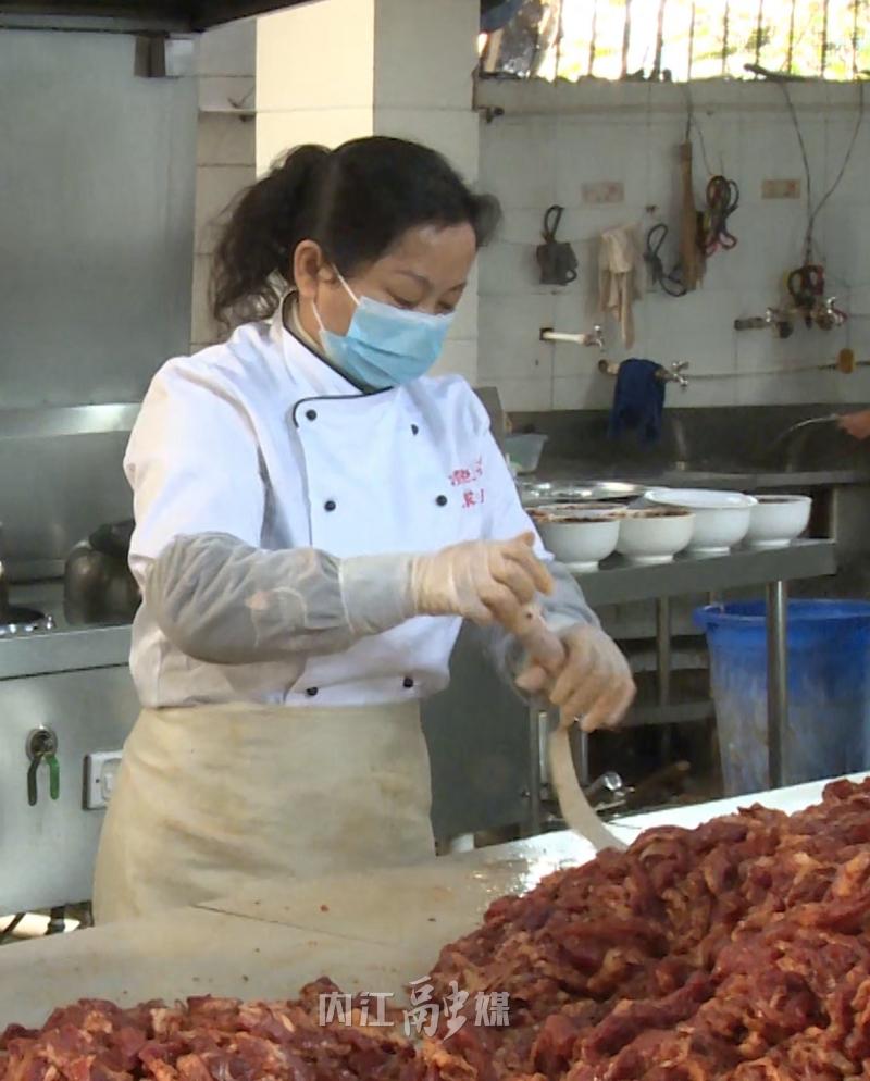 “我们守住‘凌家点杀风干肉’这门技术整整40年,始终秉承绿色、生态、健康、纯手工的初心。”张冬琴的话语里满是坚守与自豪。40年间,她与团队在守住老味道的同时,不断摸索工艺细节的优化,如今1年能制作上万斤风干肉。这些承载着内江烟火气的腊味,靠着消费者的口口相传,从川南小镇走向了全国各地,成为外地游子慰藉乡愁的味觉寄托,也让更多人领略到了内江非遗的独特魅力。“看到大家认可这个内江味道,心里就特别满足,希望把这门传统技艺一直传下去,让更多人尝到川南的烟火滋味。”张冬琴眼中闪烁着对传承的坚定与期盼。