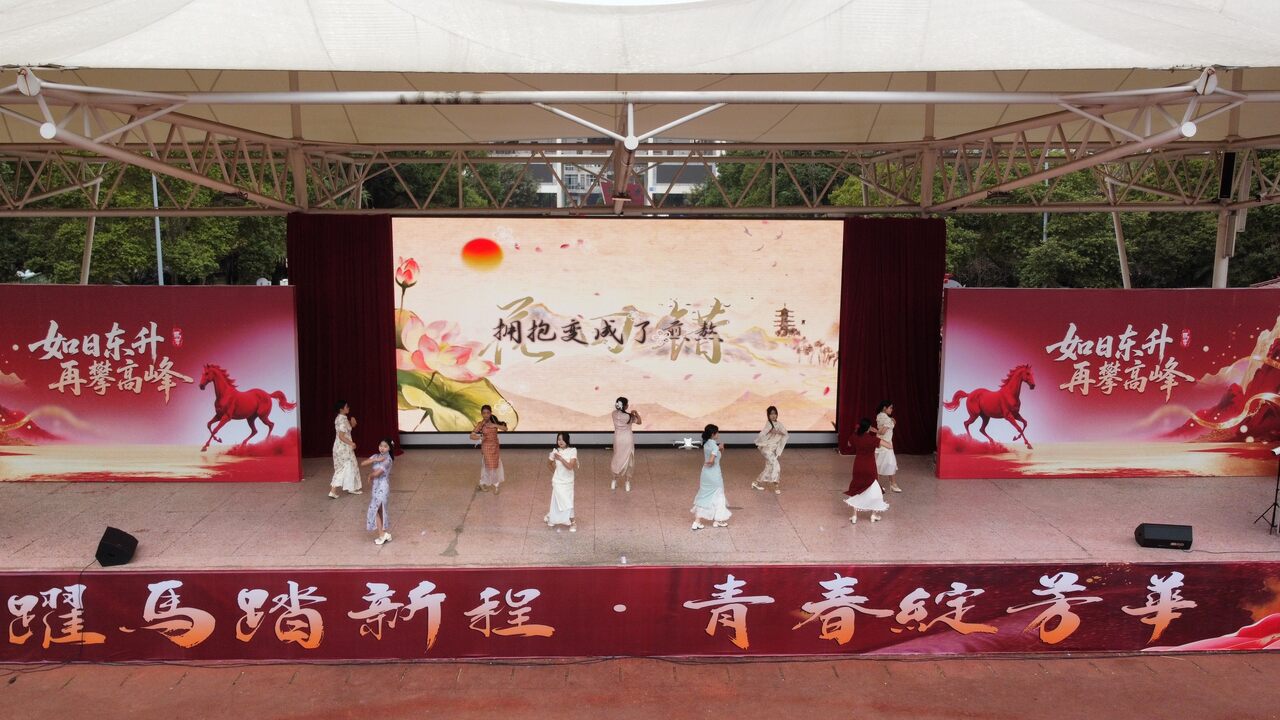 下午2:20,活动在活力四射的开场舞《问鼎》中正式拉开序幕,随后,由初中部、高中部、学校工会、团委以及音乐社、舞蹈社等精心编排的节目逐一登场。节目单上,班级合唱《世界赠与我的》、歌伴舞《闪耀》、舞蹈《水龙吟》等16个节目轮番上演,涵盖了歌曲