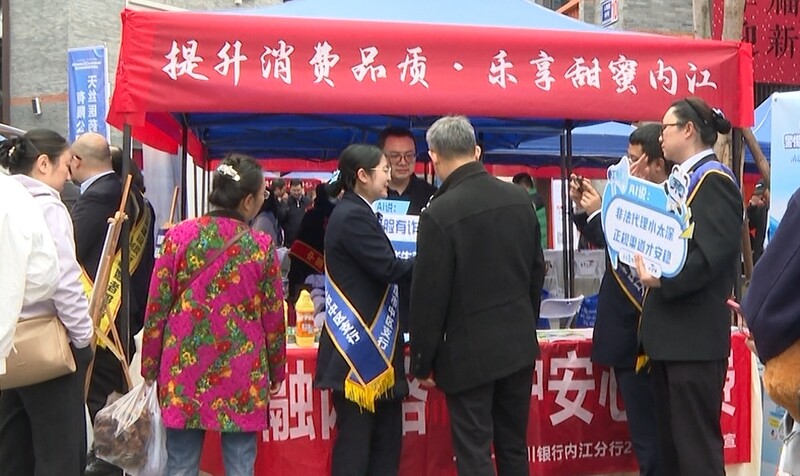3月12日上午,“提升消费品质(黑点)乐享甜蜜内江”2026年内江市“3·15”消费者权益日主题宣传暨品质消费季活动举行,四川银行内江分行作为品牌商家积极参与,以多阵地、多形式开展金融消保宣传活动,把实用的金融知识和贴心的金融服务送到群众身边,切实筑牢辖区金融消费安全防线。