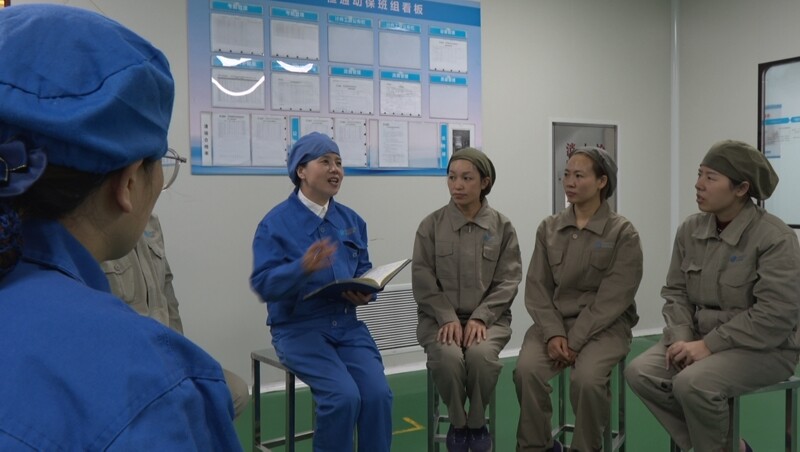 随后,李玉梅便换上蓝色工装,走进了她最熟悉、也最牵挂的“战场”——粉散预车间。在班组学习室和车间一角,李玉梅用带着内江乡音的朴实语言向大家传达两会精神,分享她关于电商平台治理、物业管理立法的建议。