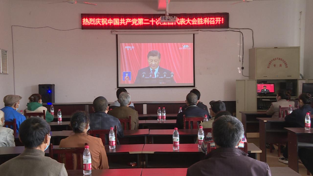 靖民镇园田社区组织收听收看党的二十大开幕盛况。