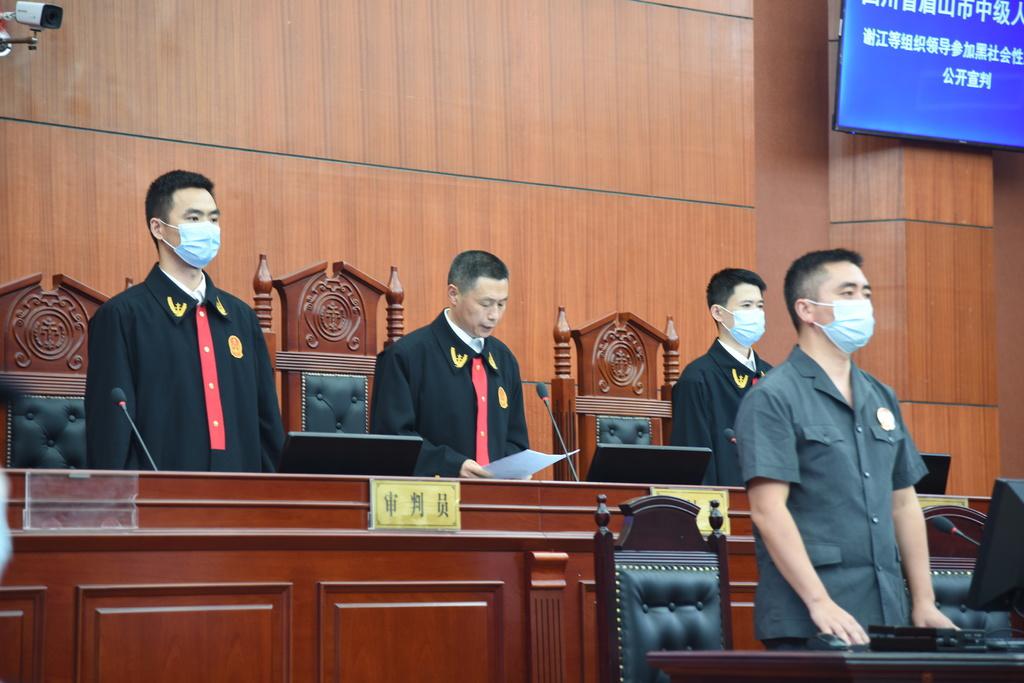 眉山市中级人民法院对谢江等人涉黑案进行审判。
