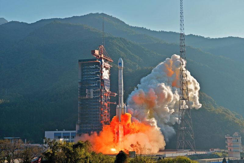 我国在西昌卫星发射中心用长征三号乙运载火箭(及配套远征一号上面级),以“一箭双星”方式成功发射第50、51颗北斗导航卫星(2019年11月23日摄)。