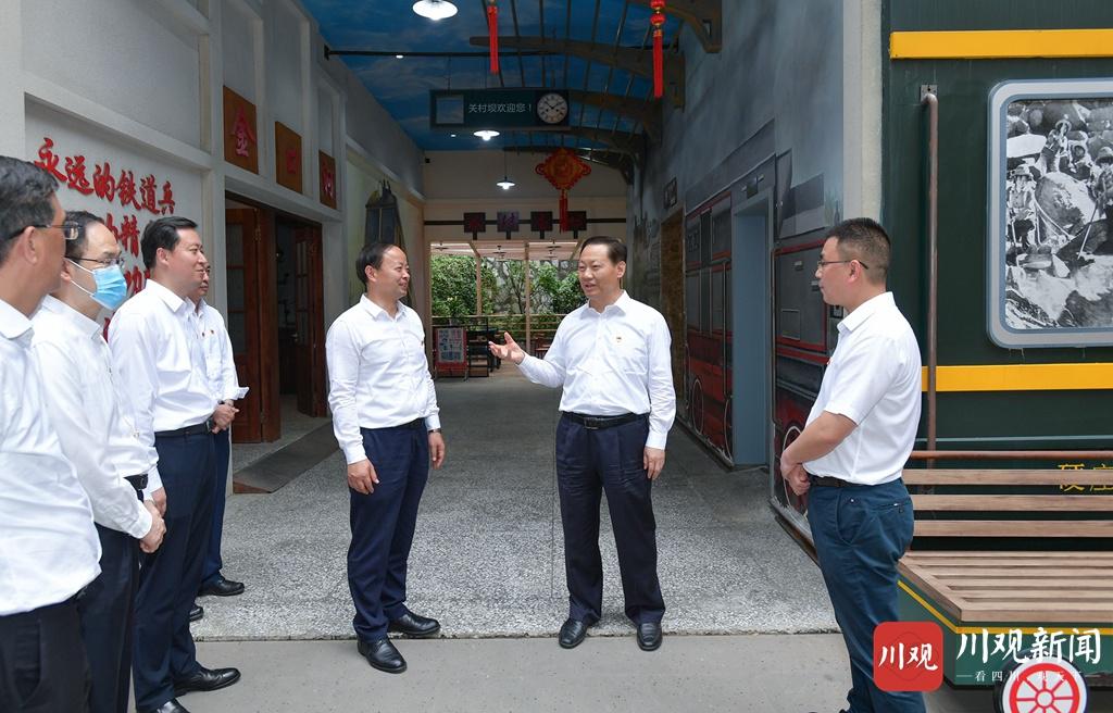 △5月31日,省委书记彭清华来到位于乐山市金口河区永和镇的成昆铁路关村坝站,在修建于站旁半山腰的铁道兵博物馆调研,详细了解铁道兵修筑成昆铁路的艰辛岁月和丰功伟绩,听取乐山市和金口河区开展党史学习教育及“我为群众办实事”实践活动情况汇报。