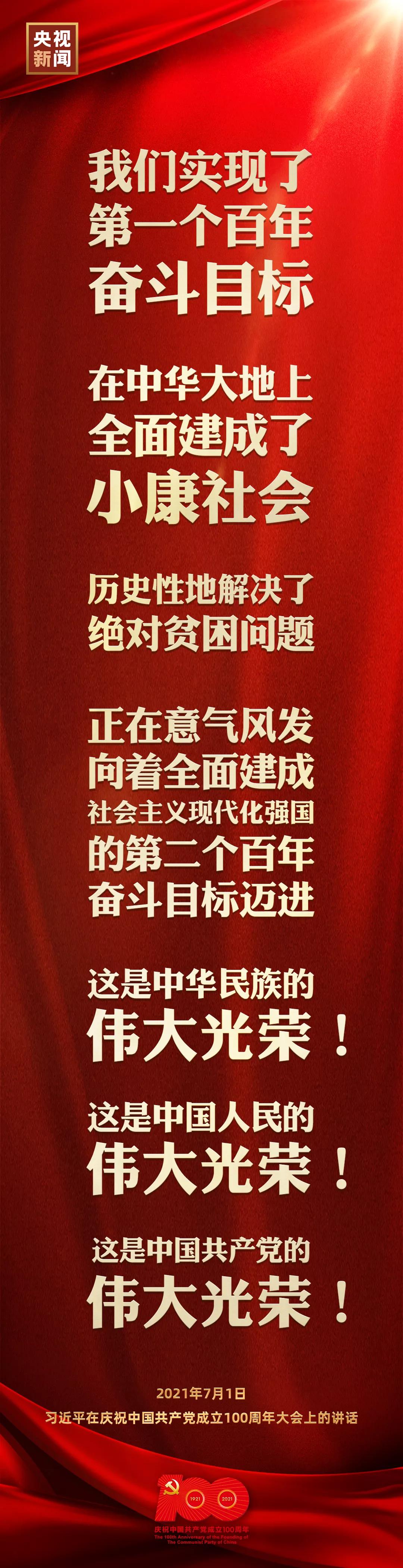 7月1日上午,庆祝中国共产党成立100周年大会在北京天安门广场隆重举行。中共中央总书记、国家主席、中央军委主席习近平发表重要讲话。