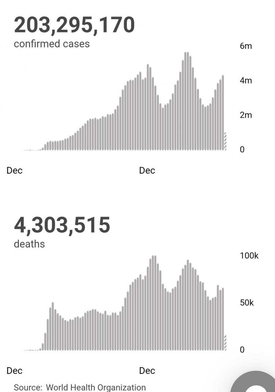 世卫组织:全球新冠肺炎确诊病例超2.0329亿例