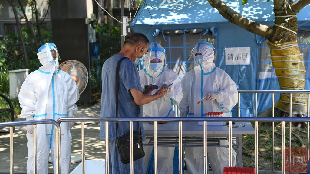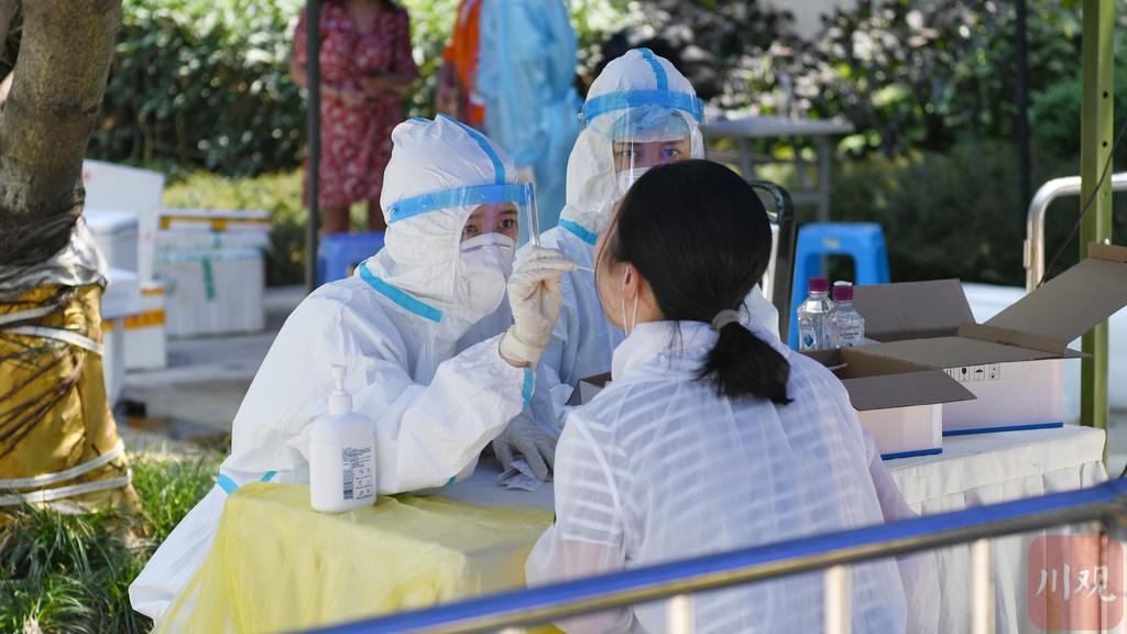 8月3日,医护人员正在进行核酸检测采样工作。(川观新闻记者 李强 摄影)