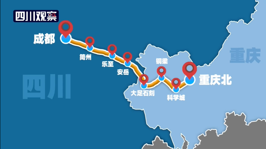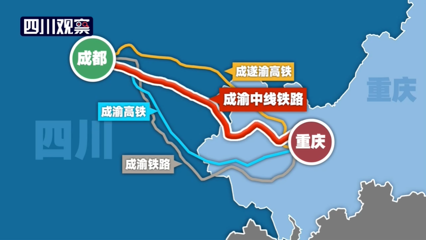 目前,成渝两地间已开行成遂渝高铁和成渝高铁两条高速铁路,以及一条成渝铁路,今天开工的成渝中线铁路是成渝间的第三条高铁和第四条铁路。
