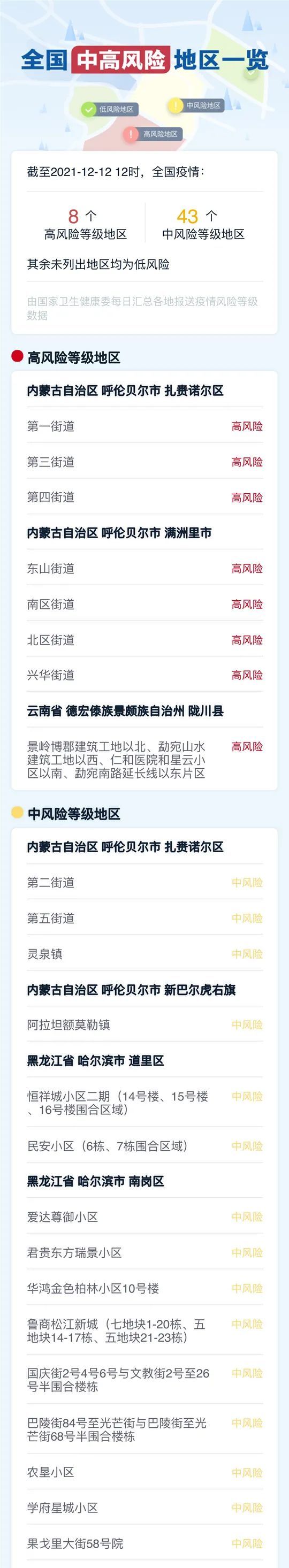 国内中高风险地区汇总表