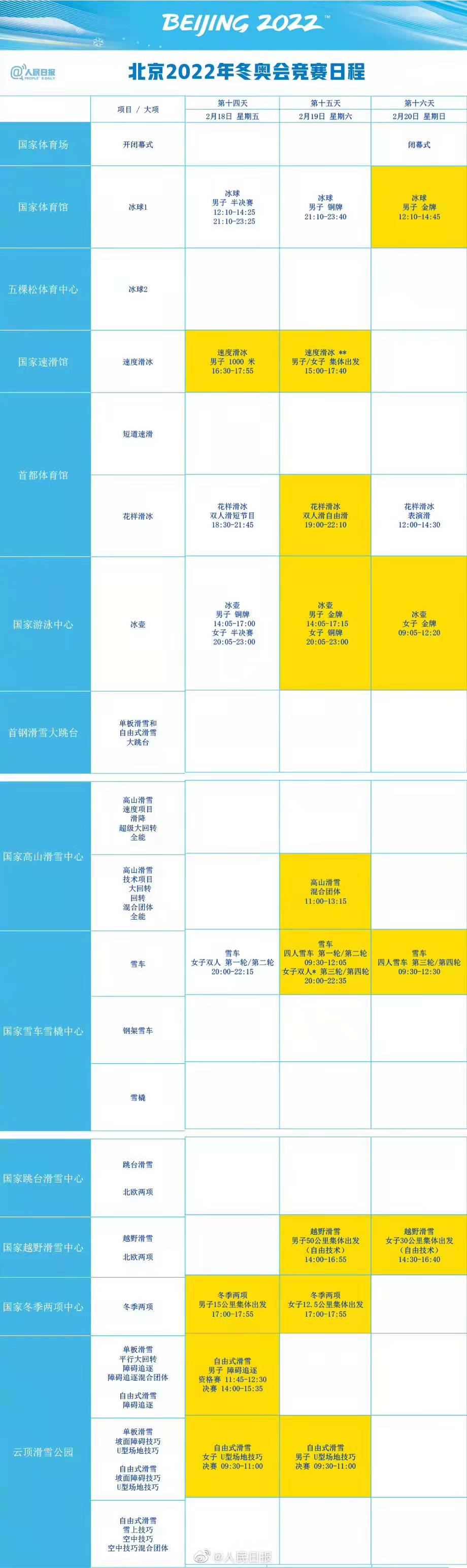 17日,北京冬奥组委发布北京冬奥会竞赛日程终版,让我们一起期待,为冬奥健儿们加油!
