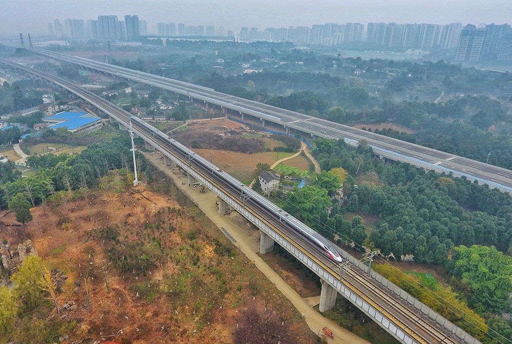 成渝“双核”之间最顺直、最高效的客运直连通道——成渝中线高铁正加快建设中,建成后成渝将实现50分钟通达,受益人口近3000万。