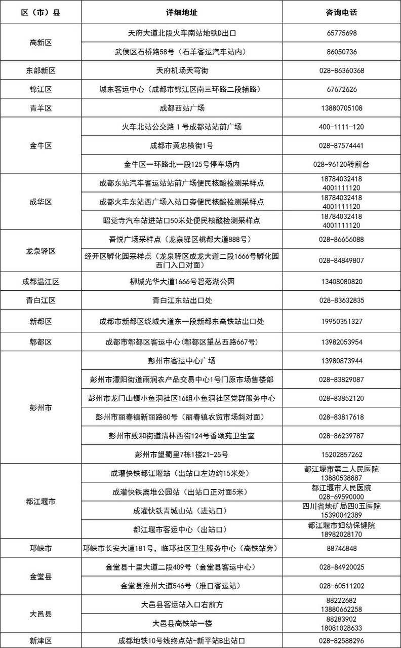 成都“黄码”人员核酸检测免费!各类核酸检测点位公布