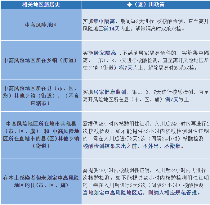 来(返)川人员要主动参与疫情防控工作,积极履行防控义务,做好个人防护,配合落实疫情防控措施。