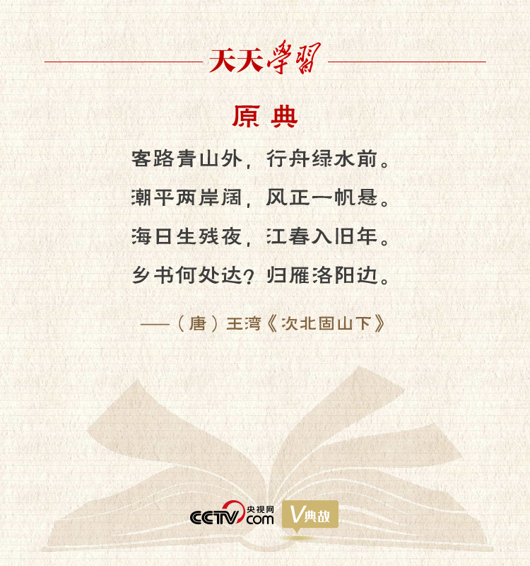 颈联“海日生残夜,江春入旧年”被后人视为盛唐气象的标志:残夜未尽,一轮红日已从海上喷薄而出,旧年未去新春就已光临人间。这两句诗得到了当时宰相张说的极度赞誉,并亲题于政事堂上,“令为楷式”。尾联“乡书何处达?归雁洛阳边”照应首联,诗人目送归雁,思绪自然由眼前的江南春色跳接到千里之外的洛阳,不由得萌生出怀乡之情。