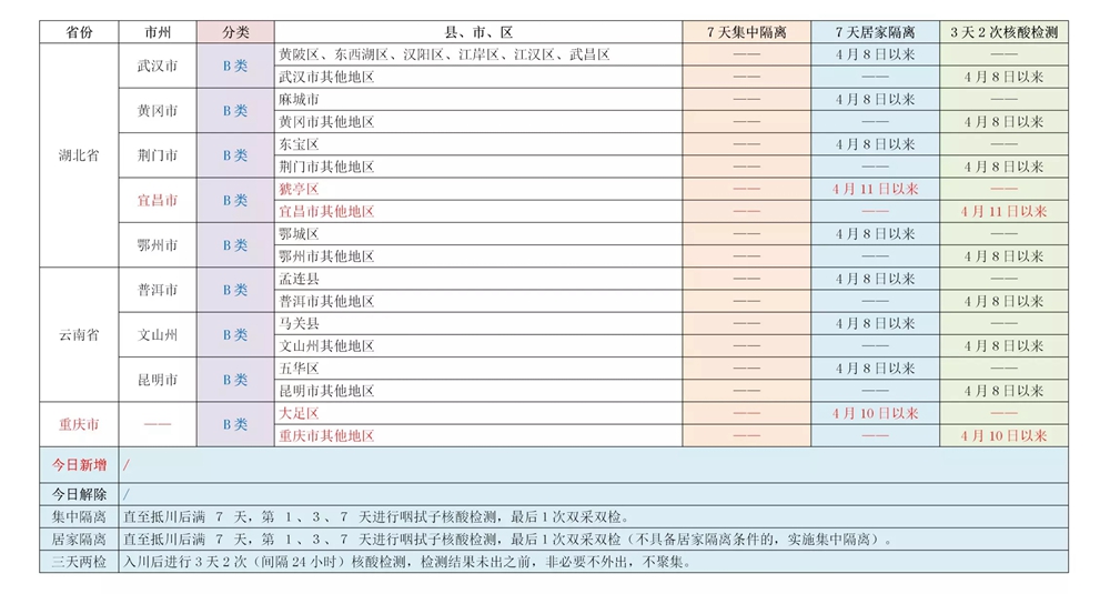 关注!四川对来(返)川人员实行“A、B类地区”分类管控(附具体名单)