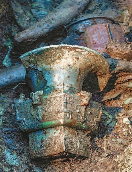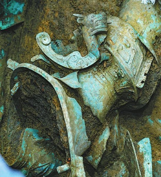 如今,6座新坑中7、8号坑仍在继续发掘,有人趴在操作台上剔着文物上的泥土,有人在电脑前记录着现场信息。坑内,层层叠叠的象牙已经取完,暴露出来的青铜器密密麻麻,视觉效果极为震撼。在下一次成果发布中,预计还将继续有重量级的文物出现。