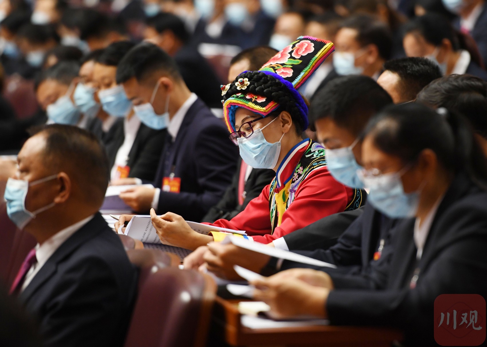 庄严而热烈的会场内,悬挂着的巨幅标语凝练着大会的主题——高举习近平新时代中国特色社会主义思想伟大旗帜,团结奋进全面建设社会主义现代化四川新征程!