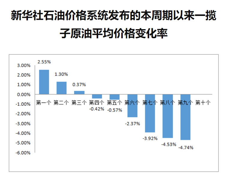 受国际油价回调影响,本周期一揽子原油价格变化率由正转负,且近几日负向幅度持续扩大。新华社石油价格系统7月11日发布的数据显示,7月8日一揽子原油平均价格变化率为-4.74%。据此测算,预计7月12日24时,国内汽、柴油价格将迎来下调,这将是年内成品油零售限价的第三次下调,也是首个“两连降”,暂预计下调幅度为每吨330元左右。