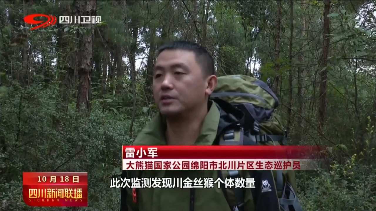 大熊猫国家公园绵阳市北川片区生态巡护员 雷小军:此次监测发现的川金丝猴个体数量较往年同期明显增加,说明了我们保护区,近年来环境愈来愈好。