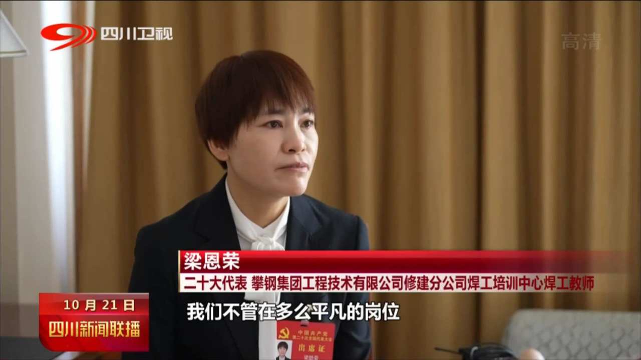 二十大代表 攀钢集团工程技术有限公司修建分公司焊工培训中心焊工教师 梁恩荣:我们不管在多么平凡的岗位,只要你坚持不懈,我们人生总会有出彩的机会,做好传帮带,培养更多的高技能人才。