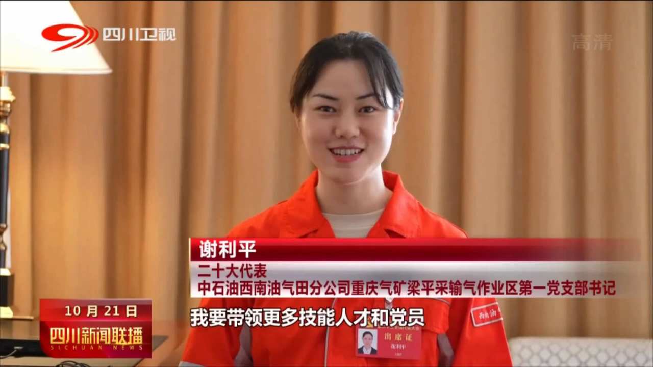 二十大代表 中石油西南油气田分公司重庆气矿梁平采输气作业区第一党支部书记 谢利平:我要带领更多技能人才和党员发挥石油人不怕苦、不怕累、能抗压、能顶事的精神,坚定不移听党话、跟党走,打牢技术基础,创新工作方法,发扬工匠精神,为全面建成社会主义现代化国家添砖加瓦。