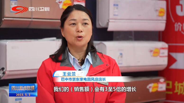 巴中市京东家电回风店店长 王云兰:预计五一期间,我们的销售额会有3至5倍的增长。