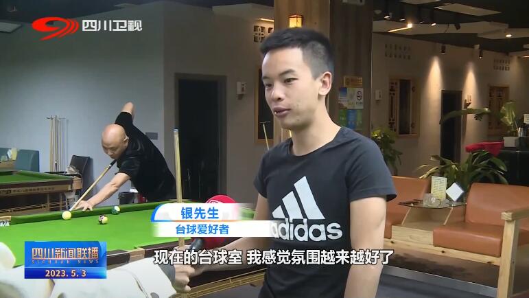 台球爱好者 银先生:现在的台球室我感觉氛围越来越好了,比以前传统的来说,可以吃饭、喝茶、休闲。