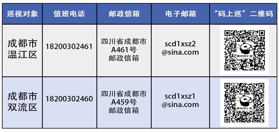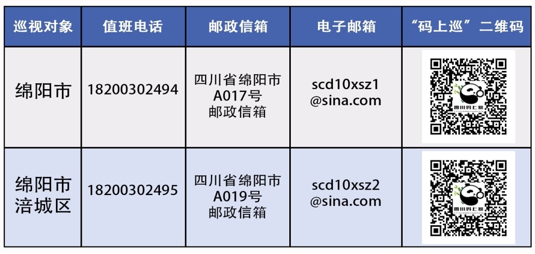 巡视期间各省委巡视组设置了值班电话、邮政信箱、电子邮箱和“四川码上巡”二维码。巡视组主要受理反映被巡视党组织领导班子及其成员、下一级党组织主要负责人和重要岗位领导干部问题的来信来电来访,重点是违反政治纪律、组织纪律、廉洁纪律、群众纪律、工作纪律和生活纪律等方面的举报和反映。对其他与巡视工作无直接关系的个人诉求、涉法涉诉等信访问题,将按照分级负责、属地管理原则,转交有关单位办理。