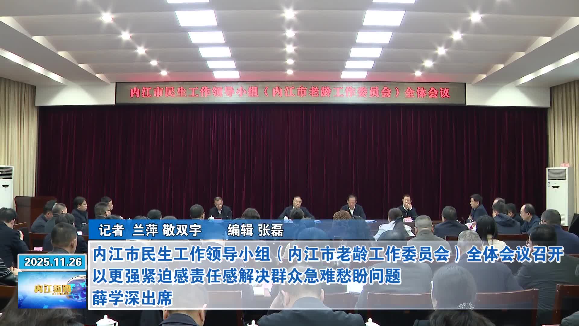 11月25日,内江市民生工作领导小组(内江市老龄工作委员会)全体会议召开。市委副书记、市长、市领导小组组长薛学深主持会议并讲话,强调要坚决贯彻习近平总..