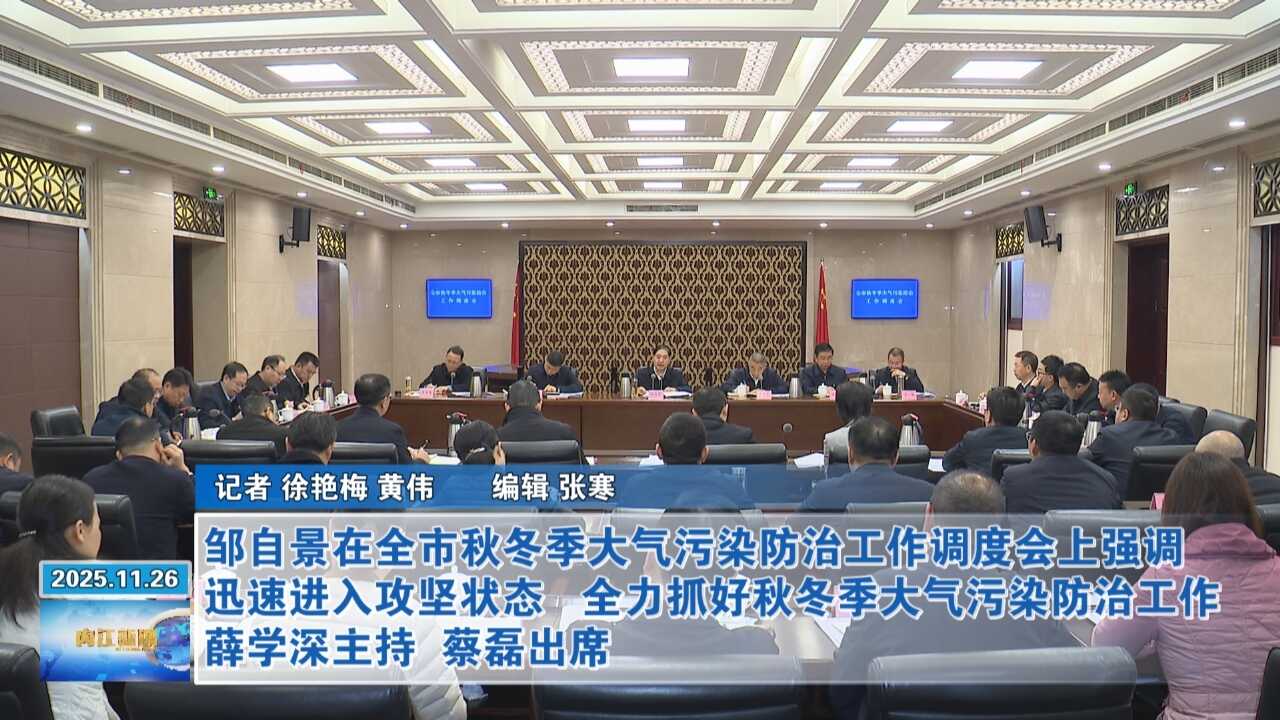 11月25日,全市秋冬季大气污染防治工作调度会召开,市委书记邹自景出席会议并讲话。他强调,要深入学习贯彻习近平生态文明思想,迅速进入攻坚状态,持续加大..