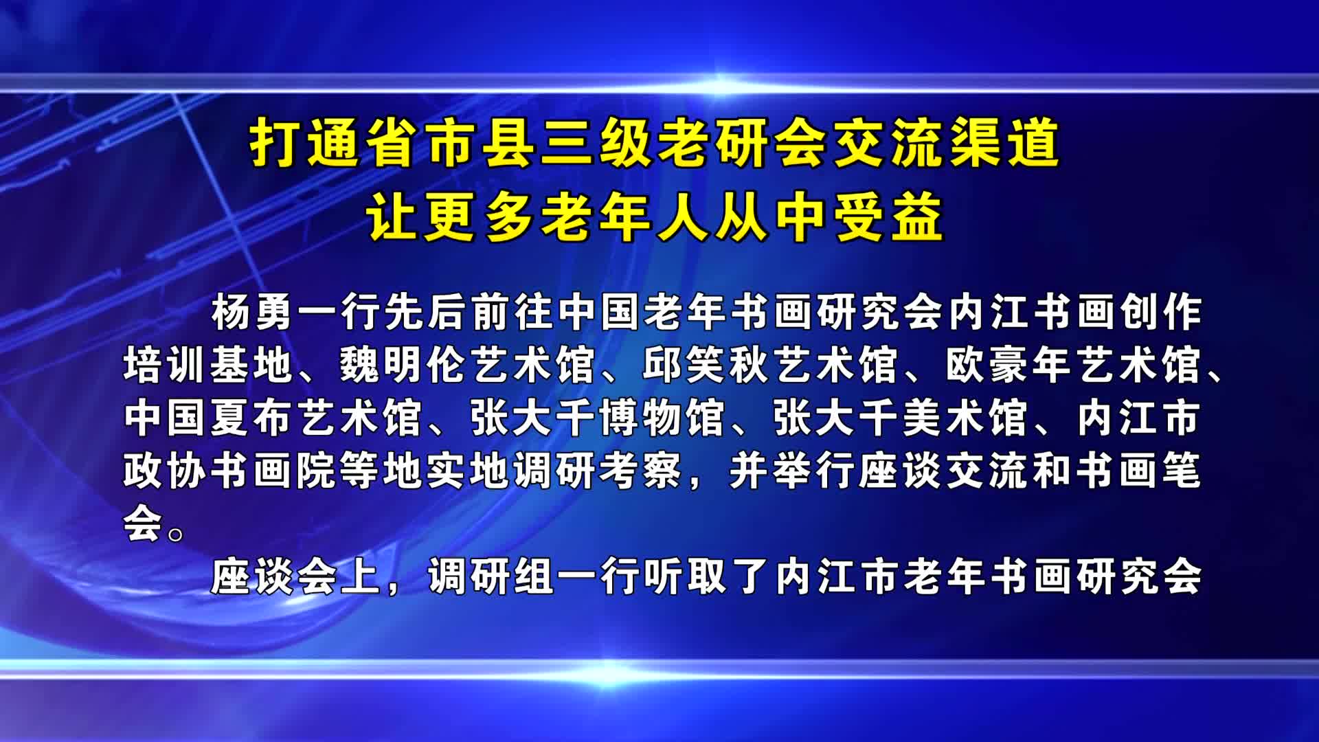 11月25日至26日,四川省老年书画研究会会长杨勇,常务副会长任晓春,副会长余仪、冉从恒一行到内江开展调研考察活动,并为“四川省老年书画研究会内江书画..