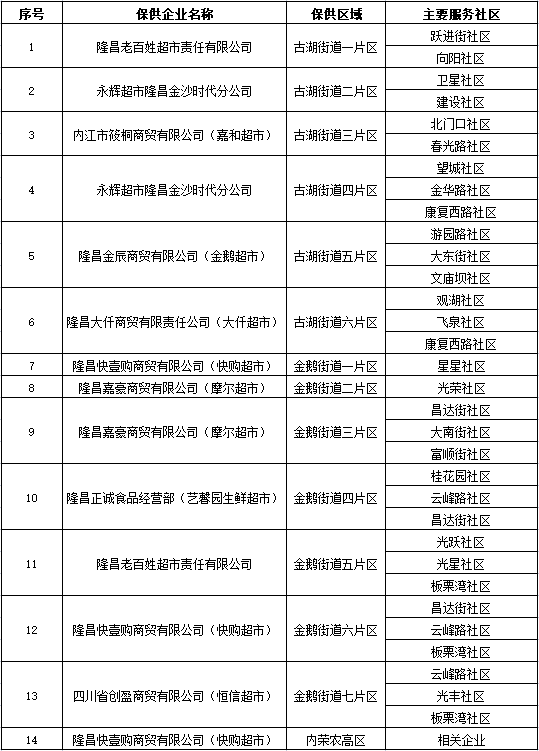 经指挥部批准的保供企业负责生活物资组织、配送,具体名单如下: