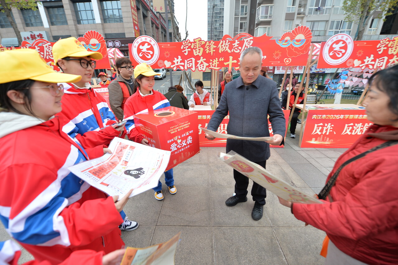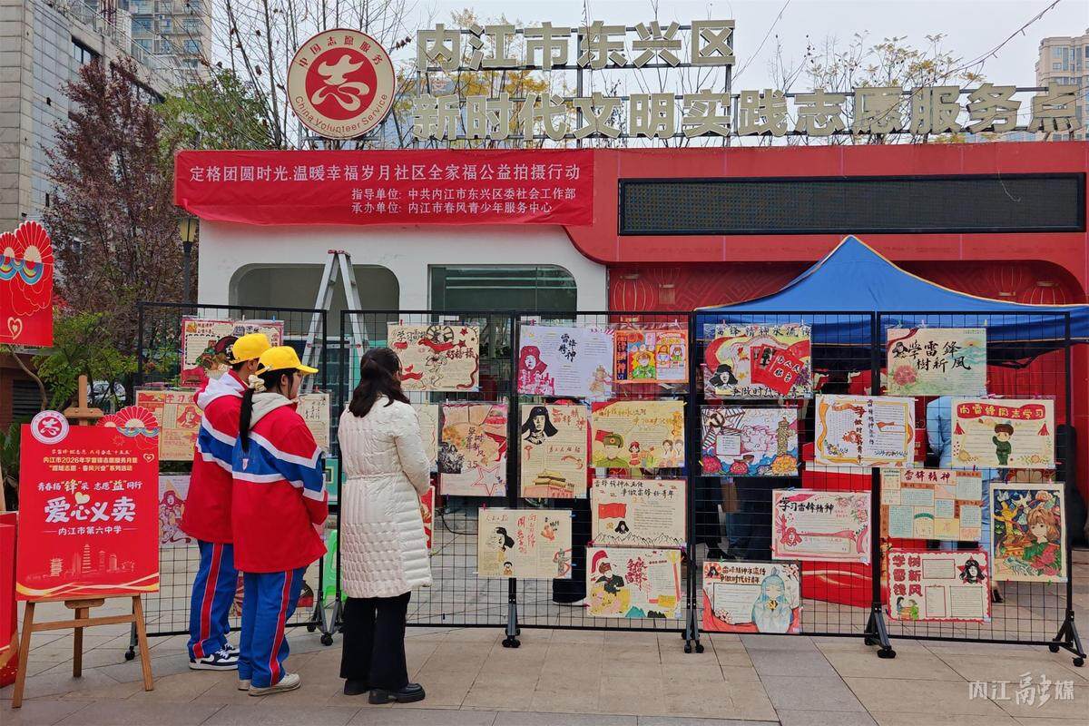 3月4日,内江市2026年学雷锋志愿服务月暨“甜城志愿·春风兴业”系列活动拉开帷幕。启动仪式现场,内江市第六中学学生手绘爱心海报义卖摊位格外亮眼,一幅幅饱含创意与温情的雷锋主题手绘海报,吸引众多市民驻足选购,成为一道别样的暖心风景线。